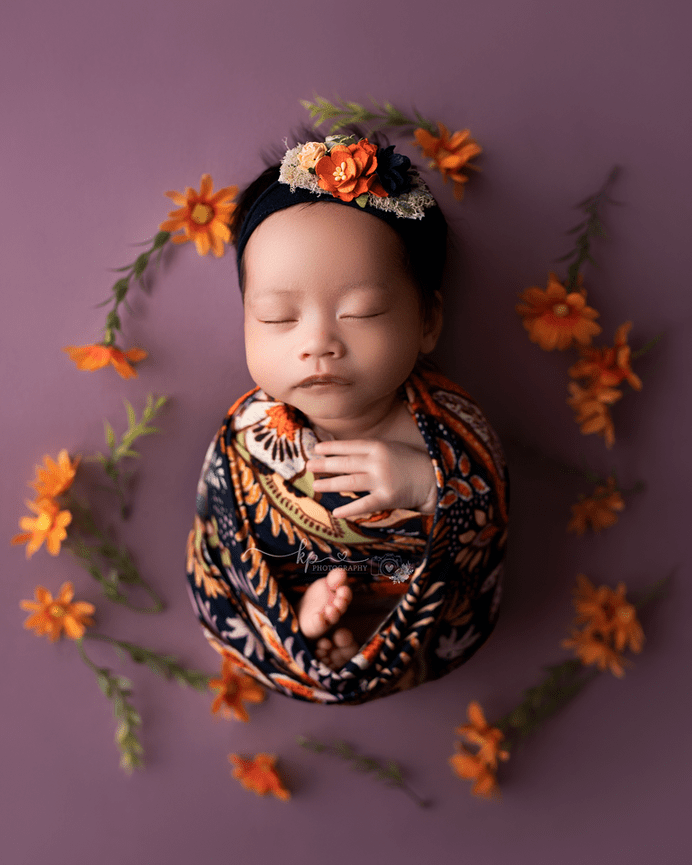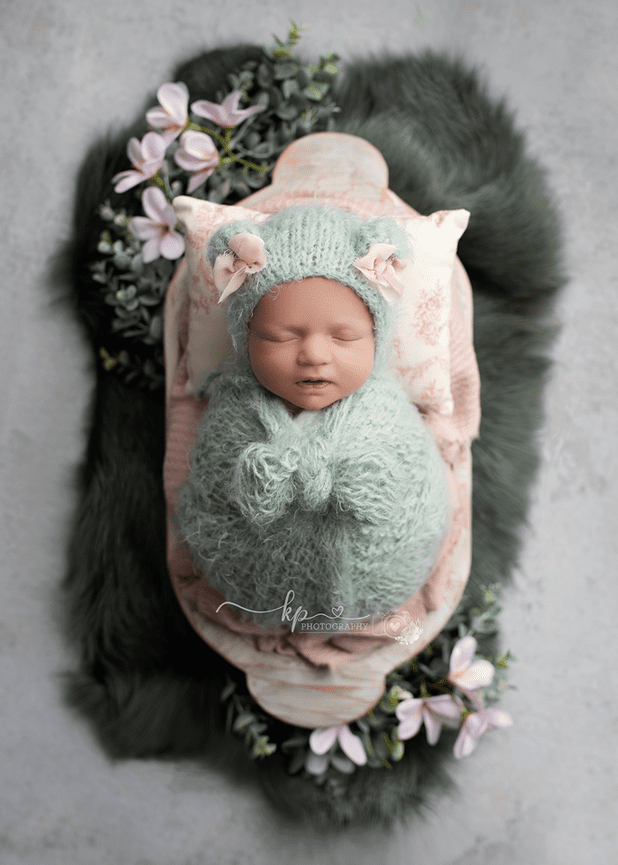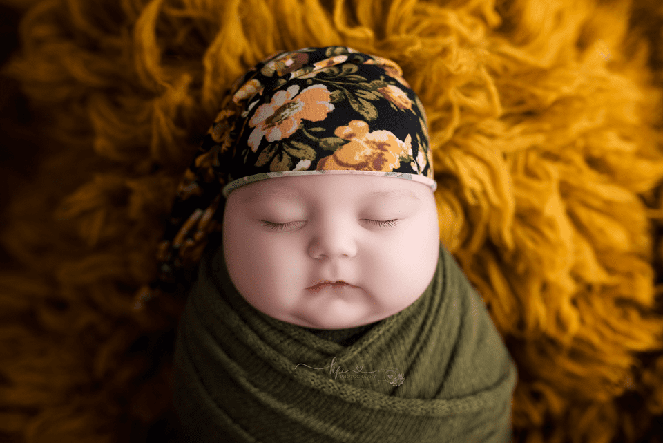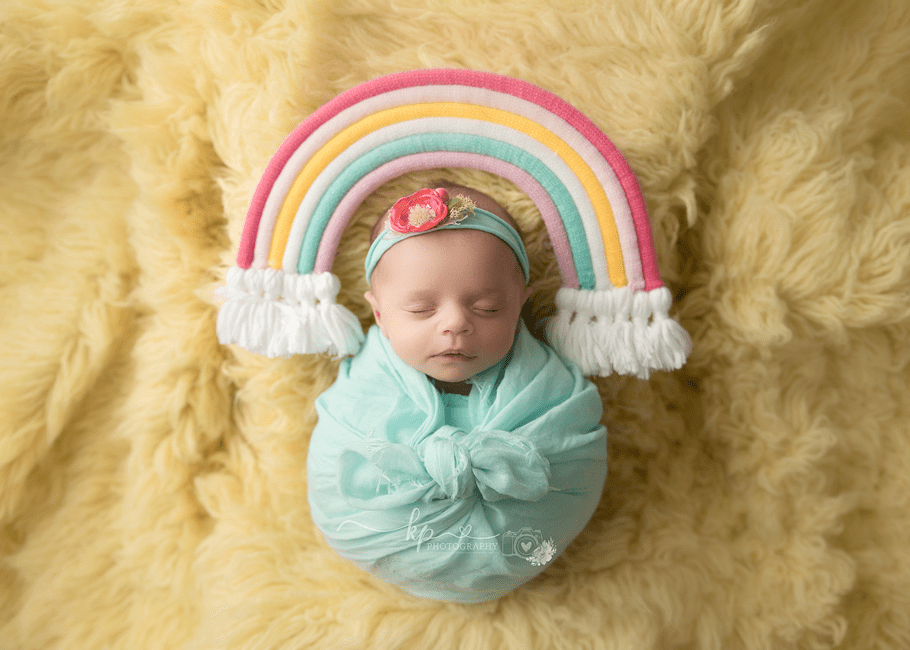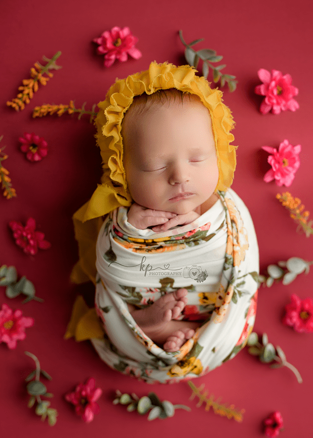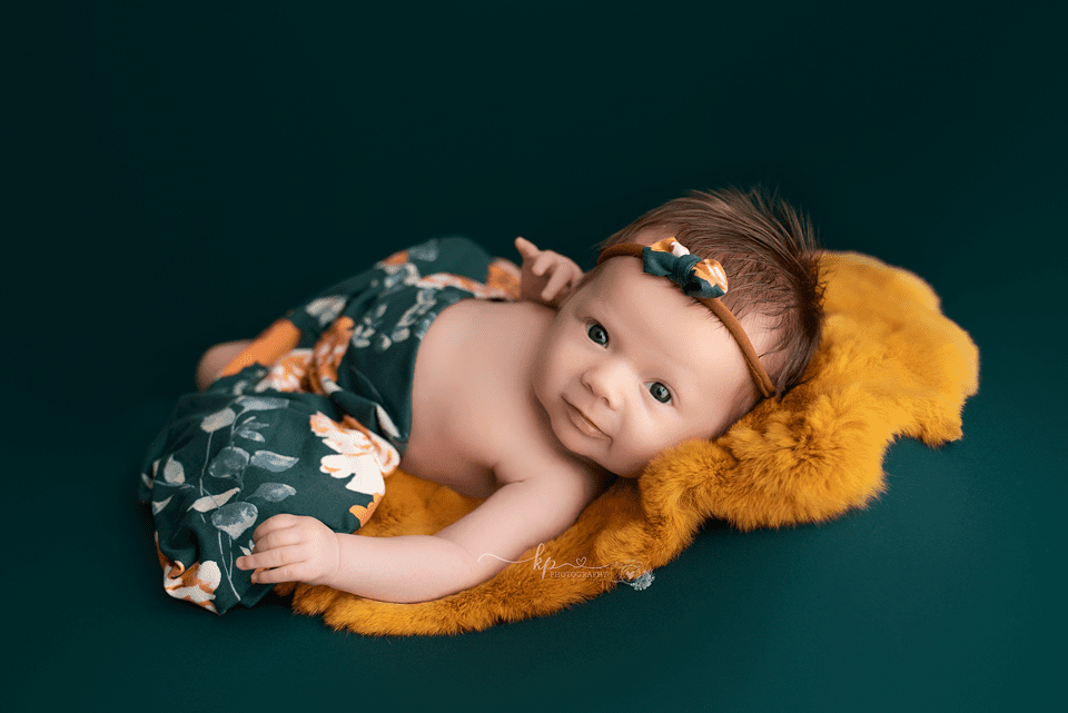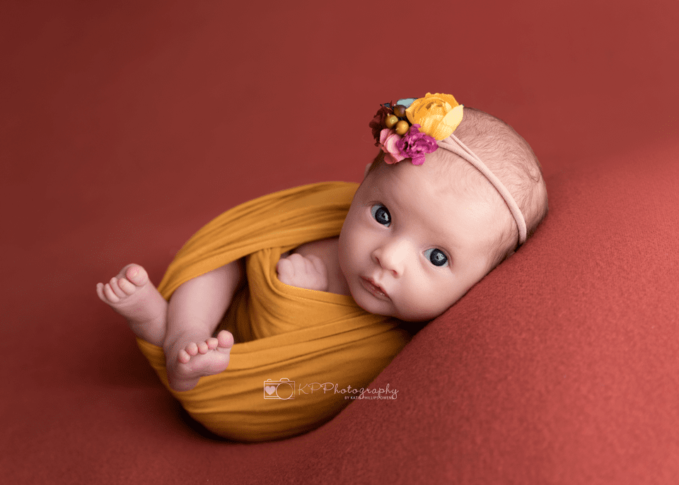 Known for her vibrant setups, Katie customizes each newborn session with her vast collection of hats, headbands, props, and wraps based on the parents' color choices and preferences.